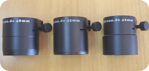 PARD® Standard-Adapter in 48mm, 45mm, 42mm und auch in 40,3mm. Mit unserer Schnellverschluss-Schraube. Wir empfehlen, die Differenz zwischen Okular und Adapter mit Klebeband (Isolierband für Elektriker auszugleichen. Funktioniert wunderbar!