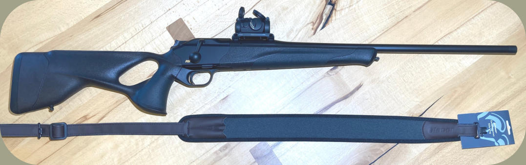 System rechts, Laufdurchmesser 17mm, .30-06 Sprg., Lauflänge 580mm, Gewinde M15x1, Abzugsgewicht 650g, Schaftrücken ohne Verstellung, Gummikappe Professional 20mm, ohne Kickstop. Schaftlänge 370mm. Das Aimpoint® H2 2 MOA ist Premiumklasse und fügt sich sehr schlank in die Silhouette der Waffe ein. Mit einem Ansitzglas auf einer weiteren Sattelmontage machen Sie diese Waffe zum Universaltalent - und sind so für alle jagdlichen Situationen gerüstet. Das niedrige Gewicht macht die Waffe zu einem führigen Werkzeug, das man gerne zur Jagd mitnimmt. Manchmal ist weniger Mehr! Incl. Blaser Gewehrriemen Anthrazit.