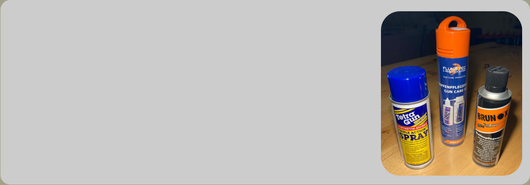 Flunatec Waffenpflegeset € 29,90 -GunCoating (100 ml), hochleistungs Schmiermittel -GunDegreaser (100 ml), Waffenreiniger -Mikrofasertuch für optimale Reinigung und Pflege Ihrer Waffe Tetra Gun Triple Action TM Spray „Synthetik-Sicher“ € 10,90 Penetrierende Fluorpolymer-Schmiermittel-Technologie Schnell verdunstend - schützend - rostlösend Brunox Waffenpflegespray 290g, für Jagd, Sport- und Sammlerwaffen € 12,90 neutralisiert Handschweiß - verdrängt Feuchtigkeit - schützt vor Korrosion löst Pulver-, Blei-, Tombak-, Kupfer- und Nickelrückstände. Verharzt nicht enthält kein Silikon, PTFE, Graphit. Neutral gegen Lack, Leder, Holz, Gummi, Plastik!
