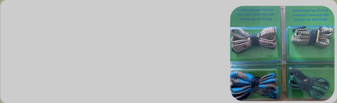 Laufreinigungs-Schnur (Gun bore cleaning Rope) € 15,90 mit eingearbeiteten Messing-Bürsten. Für folgende Kalibergruppen: .22 (5,6mm) - 6,5mm - 7mm - 7,5mm - .32 (8mm) - 9mm - 9,3mm - .45 (11,4mm)