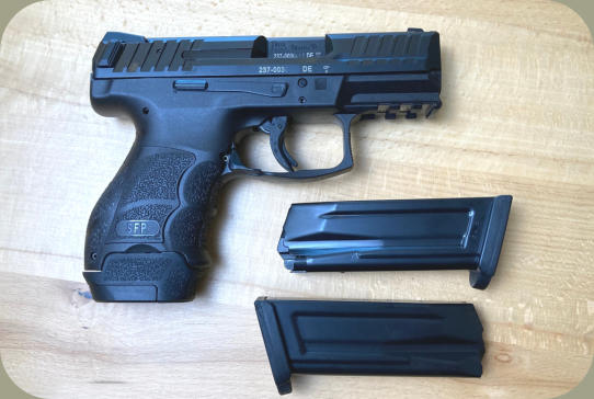 Selbstladepistole Heckler & Koch SFP9SK (Sub-Kompakt): Der Zwerg der SFP9-Serie! Mit starr verriegeltem, modifizierten Browning-System und Single-Action Abzug. Die Demontage der Pistole erfolgt werkzeuglos. Durch tauschbare Griffschalen und Griffrücken ergeben sich verschiedene Kombinationsmöglichkeiten zur individuellen Gestaltung des Griffstücks und dadurch optimale Anpassung an alle Handgrößen. Exzellente Abzugscharakteristik und höchste Präzision bei schnellen Schussfolgen. Beidseitige Magazinauslöse- und Verschlussfanghebel für Rechts- als auch Linkshänder. Mit Abzugs-, Schlagbolzen- und Demontagesicherung und kaltgehämmertem Polygonlauf aus hochfestem Spezial-Stahl. Lauflänge 86 mm (3,38“). Schnelle Zielerfassung durch nachleuchtende Visierung. Das Durchladen wird durch seitliche Nocken erleichtert! 3 Magazine, davon 1 mit Verlängerung Hauspreis: €850,00