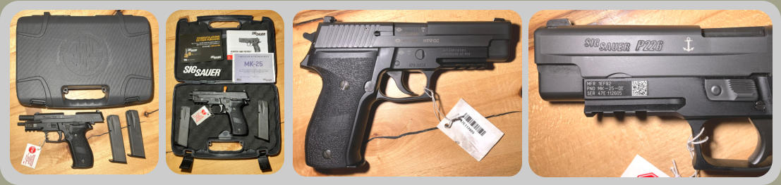Gebrauchspistole Sig Sauer P226® MK25 Identisch zur US Navy Seals Pistole mit Anker, 3-Punkt-Kontrast-Visierung, Nitron® Edelstahl-Schlitten, Lauf aus Carbon-Stahl, schwarze Polymer-Griffschalen, Double-Action/Single-Action-Abzug mit Entspann-Hebel, und Picatinny-Schiene unten. Lauflänge 112cm, Gewicht 964g, Gesamtlänge: 196 mm Die Lieferung erfolgt inklusive 3 Magazine a 15 Schuss. Für Sportschützen und Jäger bestens geeignet!